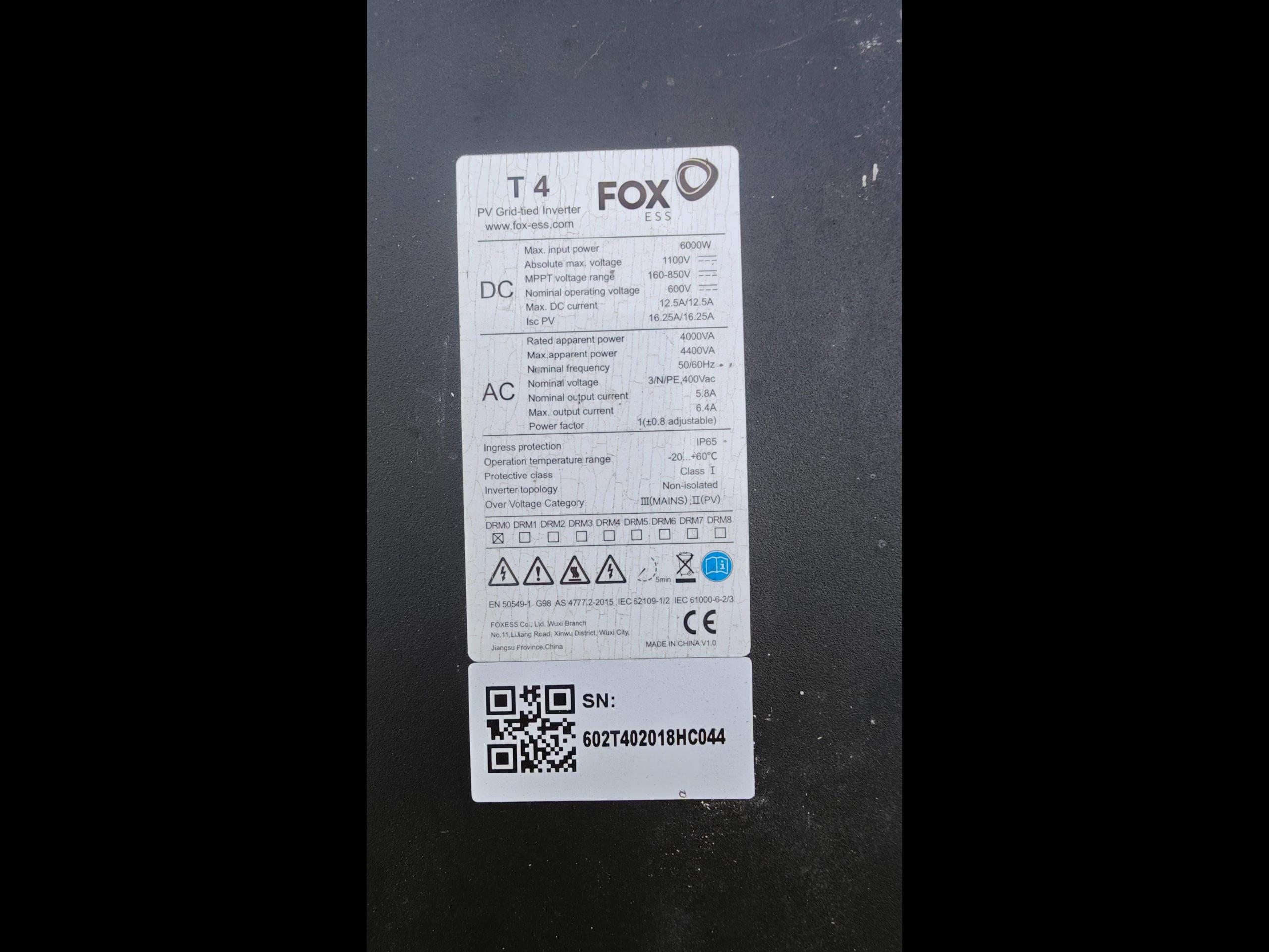Sprzedaję falownik trójfazowy foxess t4, w pełni sprawny, wraz z wtyczką donglemi mocowaniem na ścianę