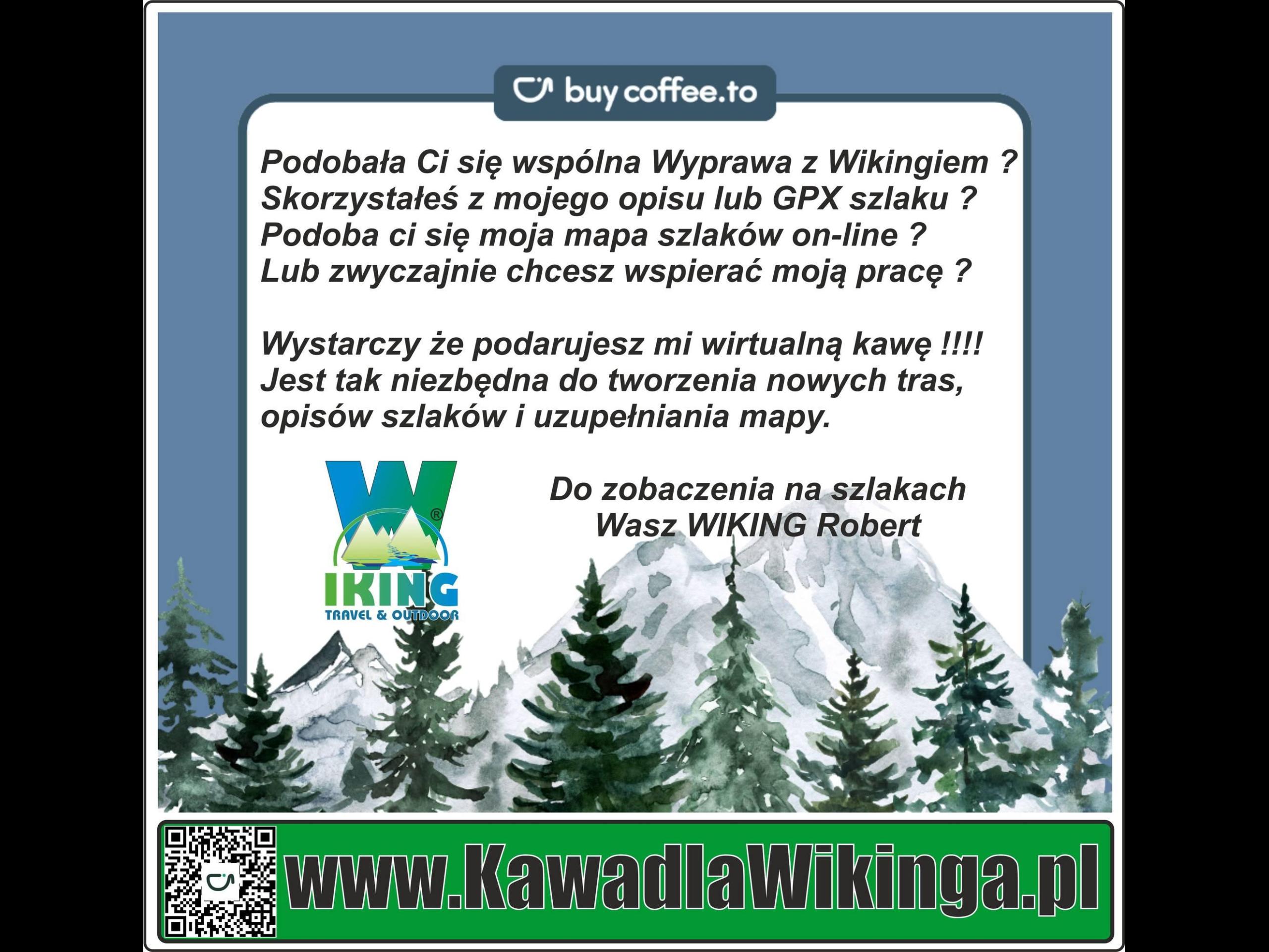 Jeśli uważasz, że mój czas poświęcony planowaniu i realizacji wypraw, tworzenia opisów i mapy szlaków, wart jest kawy, zafunduj - www.KawadlaWikinga.pl . Serdecznie dziękuję