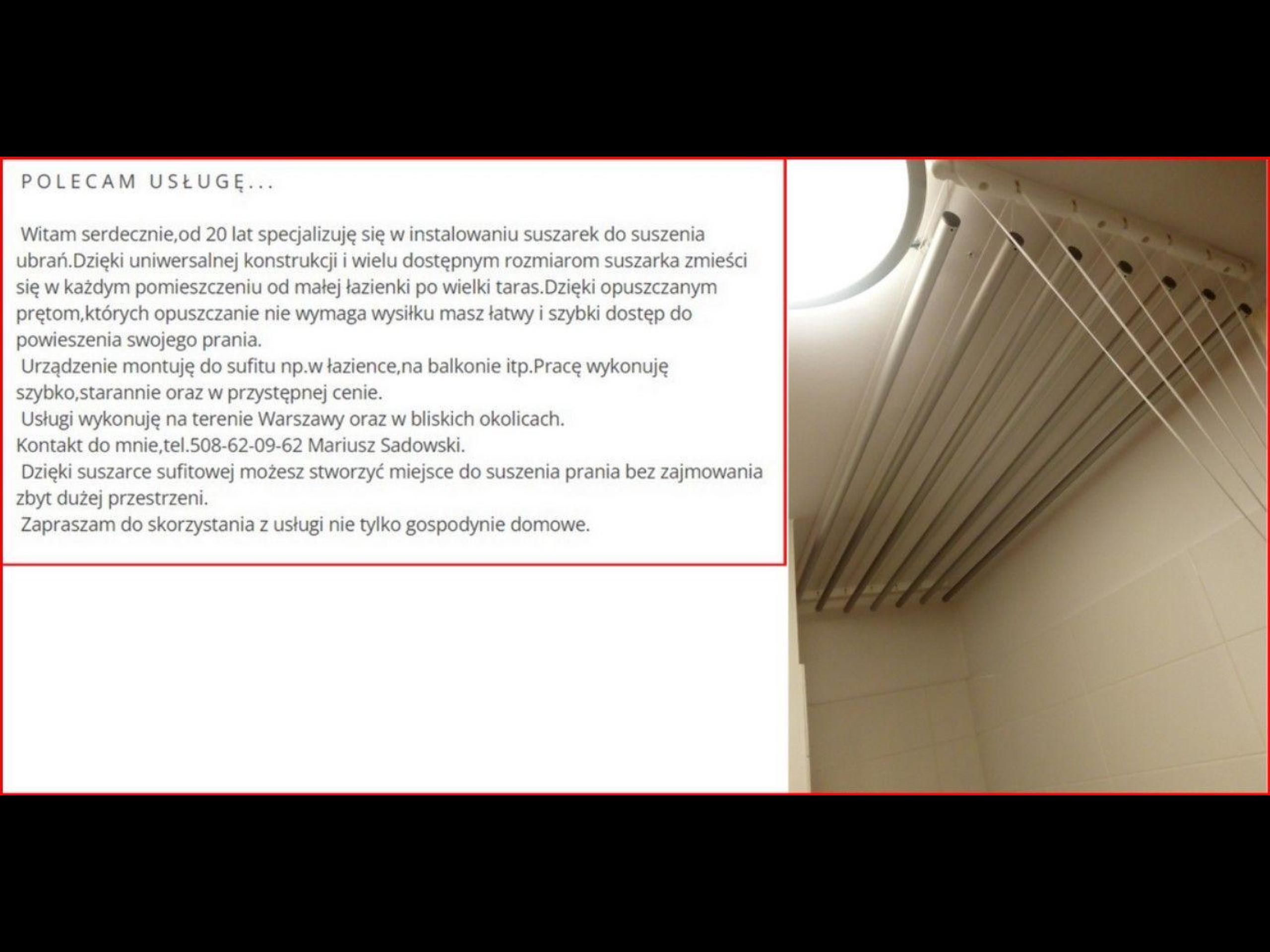 Suszarka sufitowa-szybki montaż,20 lat doświadczenia.