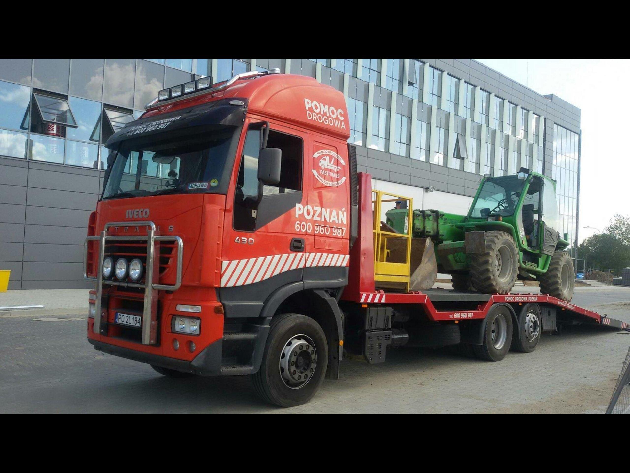 Transport maszyn budowlanych, rolniczych, przemysłowych, laweta 24 ton Poznań,
