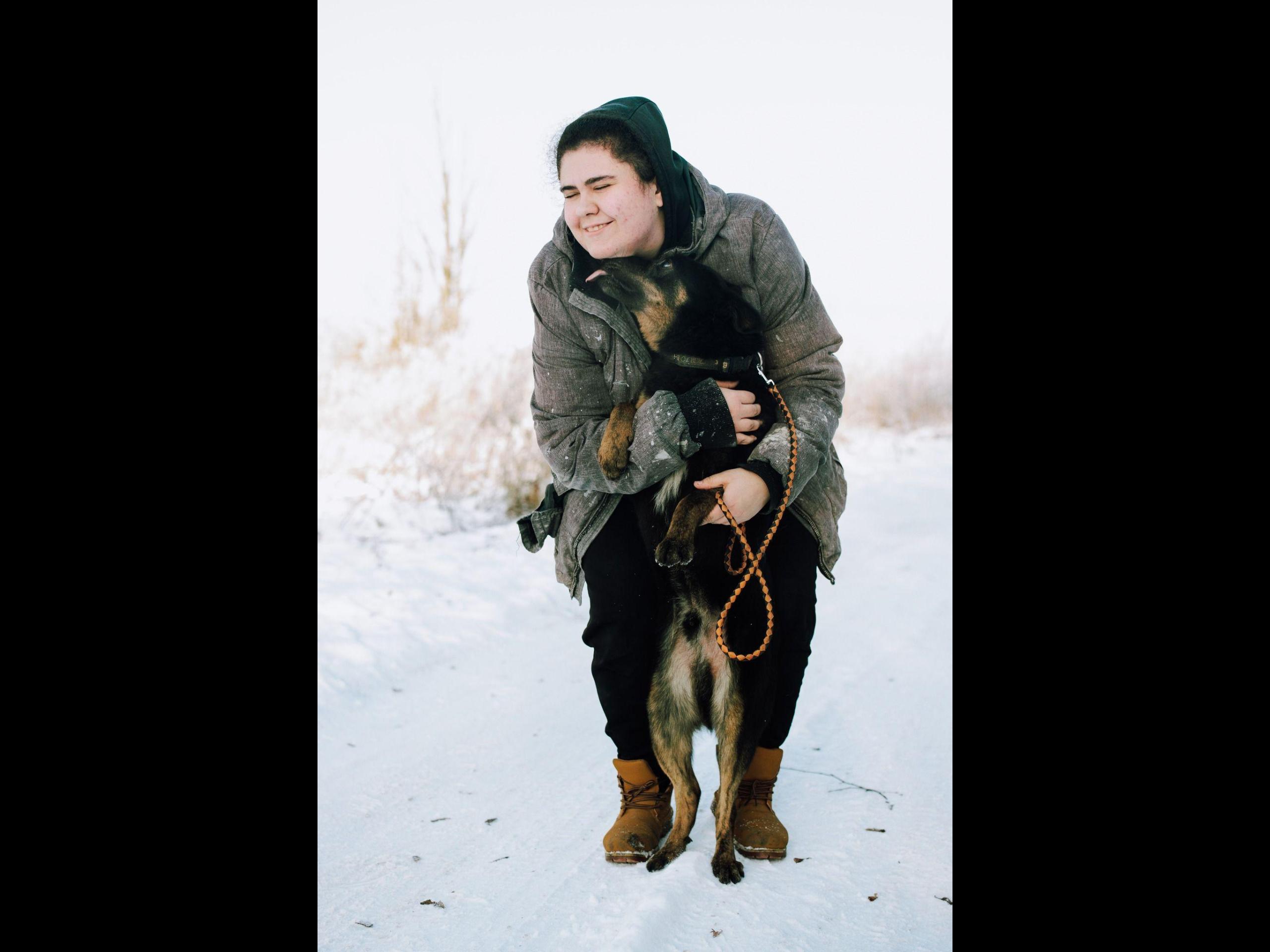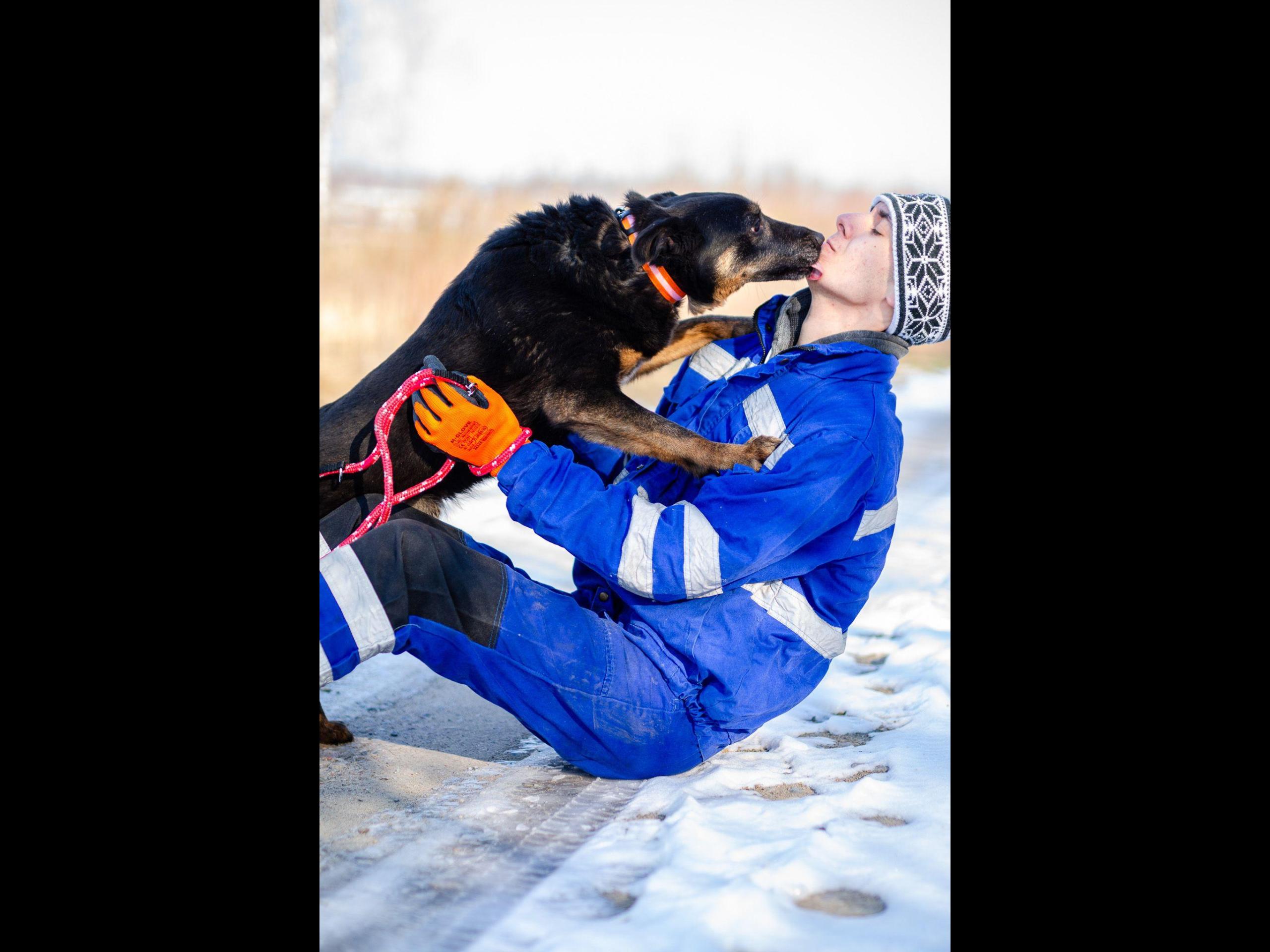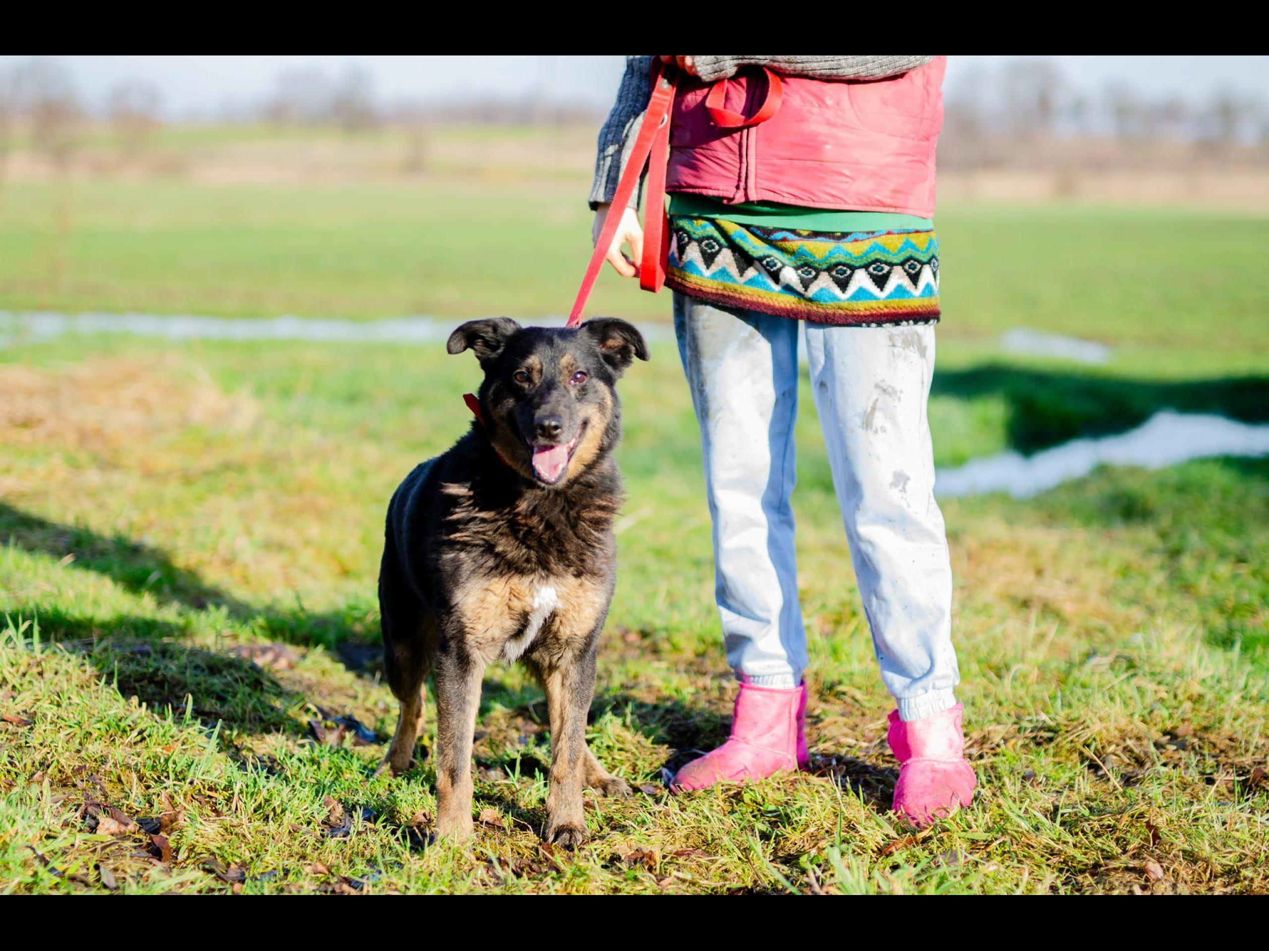 Jest średniej wielkości psem. Jak już Red pokocha to na całego!
